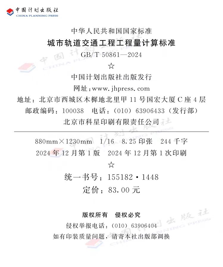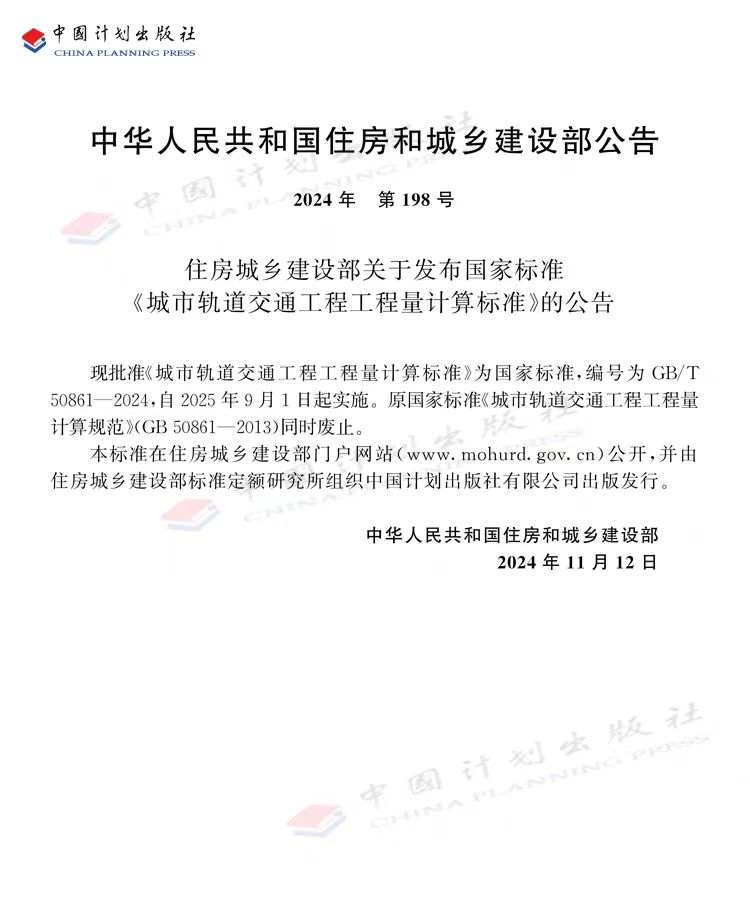 《城市軌道交通工程工程量計算標準》GBT 50861-2024